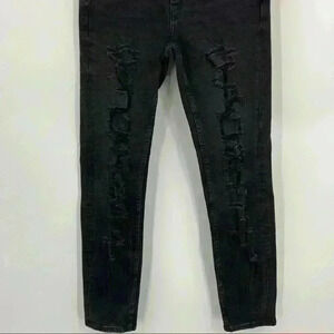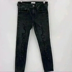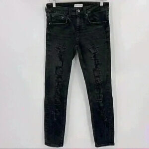 Zara Woman Premium Denim Black Skinny Distressed Jeans Size 8
