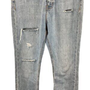Zara Woman Premium Denim Distressed Jeans Mid-Rise Size 4 Light Wash Cotton