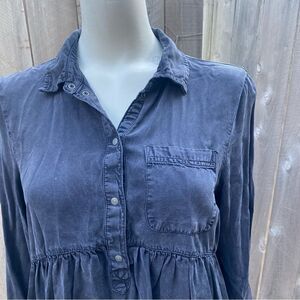 Zara Woman Premium Denim Collection Grey/Black Denim Shirt, Size XS