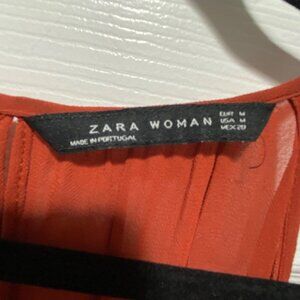 Zara Woman Red Cold Shoulder V-neckline Tunic Blouse With Keyhole Opening In Bcak. Size M. Measures 15” across front of waist and 35” down the back. Gently worn with no notable flaws.