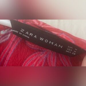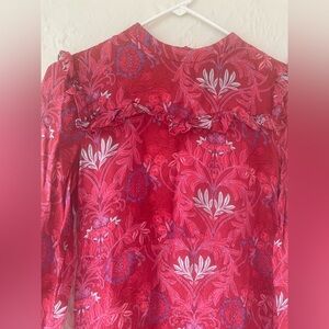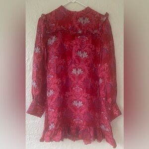 Zara Woman Red Floral Pattern Ruffled, High Neck Long-Sleeve Mini Dress; size M