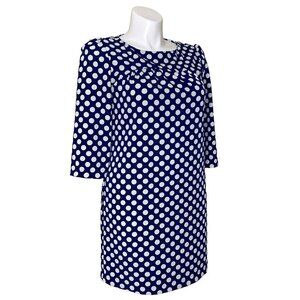 Zara Woman Shift Dress, Navy and White Polka Dot 3/4 Sleeve, Women's Size Large