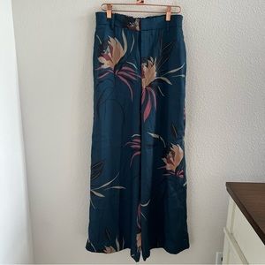 Zara Woman Silky Blue Floral Wide Leg Pants Contemporary US Small