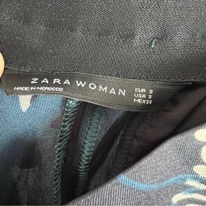 Zara Woman Silky Blue Floral Wide Leg Pants Contemporary. Zip and button closure with back elastic.