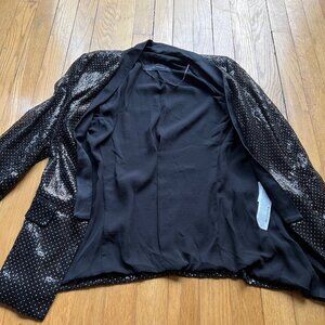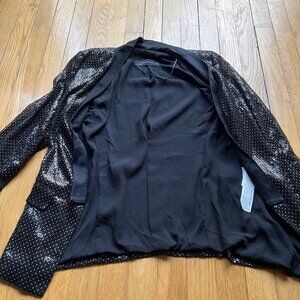 Zara Woman Size S Black Combined Polka Dot Sequin Tuxedo Collar Blazer Jacket