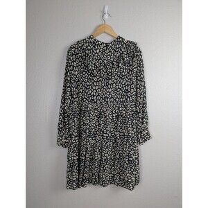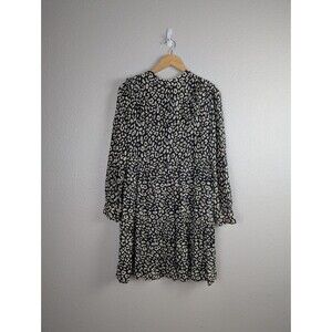 This Zara Woman mini dress features an animal print pattern and ruffle accent. It has a crew neck and three-quarter sleeves. Made of rayon, this tunic-style dress is perfect for casual wear.