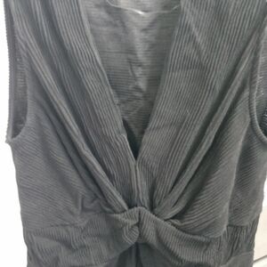 Zara Woman Sleeveless pleated Tank Blouse with Twisting at Stomach. Material Tag Is Cut But Feels Like Polyester. Size is M. Low V Neck Split at Hem both sides