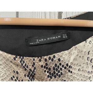 Zara Woman Sm Women's Cream Black Snake Print Blouse Top Animal Snakeskin Flowy
