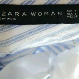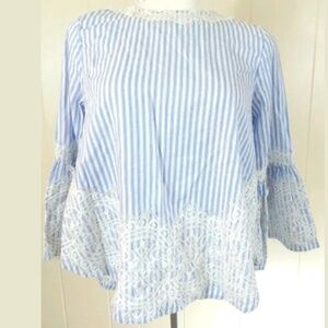 Zara Woman Striped Lace Trim Bell Sleeve Top