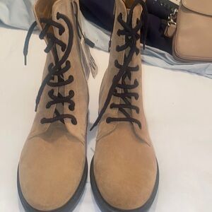 Zara Suede Lace-up Boots in tan size 9/40. comes with a black rubber sole black laces . Functional side, zipper easy to get in and out of great for running errands on the weekend round toe new with tags
