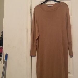 Zara Woman Tan midi three quarter sleeve knit dress size M