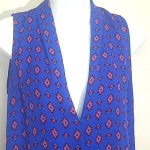 Zara Woman Tank Top blouse cross over flowy Blue Red ikat Geometric Prin…