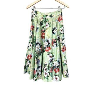 Gorgeous Zara Woman Tropical A-Line Circle Skirt. Beautiful light green with a large Hawaiian tropical floral print. Size XS.