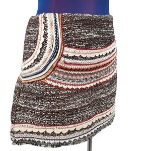 Zara Woman Tweed Embroidered Bohemian Mini Skirt Size Small Women's