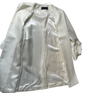 Elegant and minimalistic, this Zara Woman white overcoat adds effortless sophistication to any look. Crafted from a thick, high-quality blend for structure and warmth, this piece features soft bell sleeves and an open-front design that layers beautifully over dresses or tailored separates.