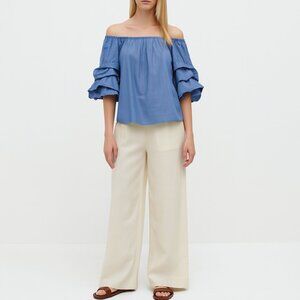 Zara Woman XS Blue Off Shoulder Ruffle Sleeve Blouse Romantic Resortwear