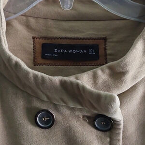 Zara Woman double Breasted peacoat khaki tan Military Gorpcore Minimalist L