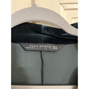 Zara size medium dark green velour dress in excellent condition. No signs of wear. Matching belt that ties around the waist. Great for the holidays. Measures 20” from armpit to armpit. 20” across the waist and it is 35” long.