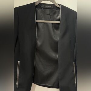 Zara Woman zipper shawl collar blazer - black, medium