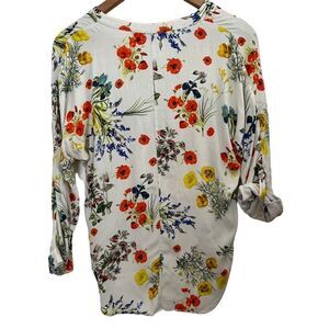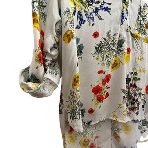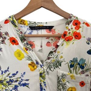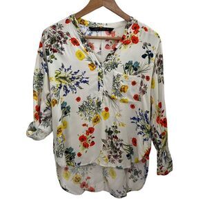 Zara Woman Floral Ho Lo Blouse, button V neck, roll up sleeves, care and fabric tag have been removed. Excellent pre-owned condition.