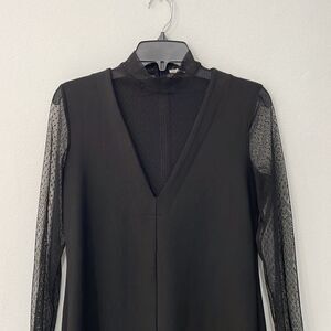 Zara Woman's Collection Sheer Sleeve High Collar Black Mini Dress Womens Size M