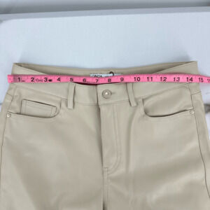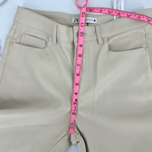 Zara Womans Faux Vegan Leather Pants Cream Sz 6 Straight High Rise Minimalist