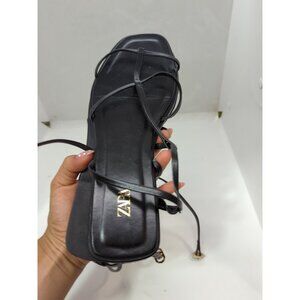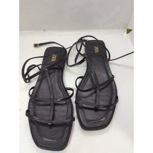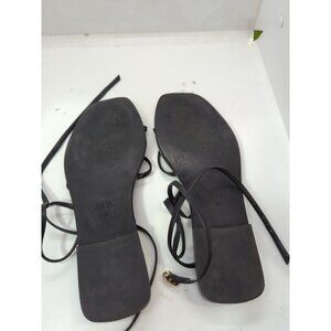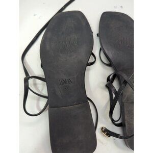 Zara Woman’s Flat Black Strappy Sandals With Ankle Strap Buckles Size 38/7.5
