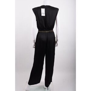 Zara Womans Jumpsuit Satin effect Long Size S Black Sleeveless 2298/210 NWT