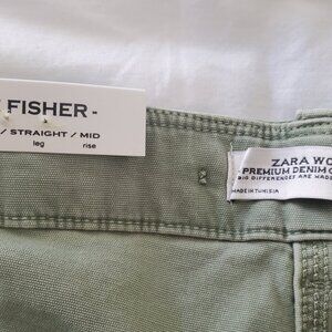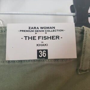 Zara Woman's NWT The Fisher Khaki Jeans 100% Cotton Mid Rise Size US 4