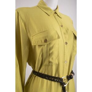 Zara Womans Midi Dress Size S Lime Green Shirt Dress Belted 3897/054 NWT. Polyamide/viscose. Shirt dress. Buttons down front. with a braided black belt. Button bodice pockets and side pockets.