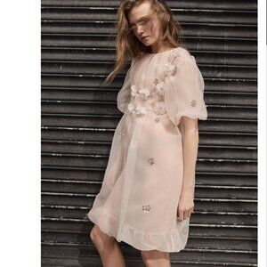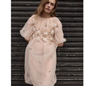 Zara Women $159 ORGANZA JEWEL DRESS Light PINK 5344/903 L NWT