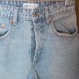 Zara Women 4 Light Wash Button Fly Cotton High Rise Straight Leg Denim Jeans