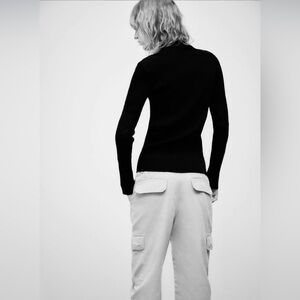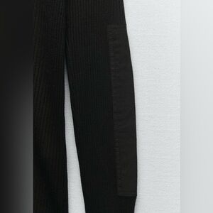 Zara Women Black Combination Turtleneck Long Sleeves Rib Tonal Appliqué Top. Pull over and stretchy fabric.