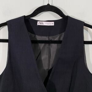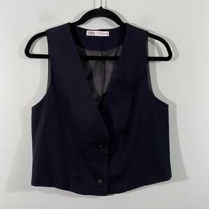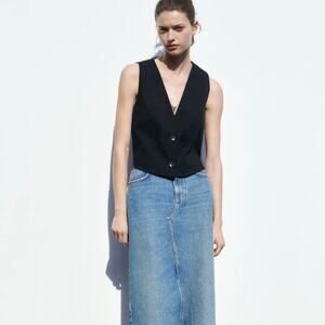 Zara Women Black Rustic Textured Fabric Button Up Cropped Vest Size XS #7484/068