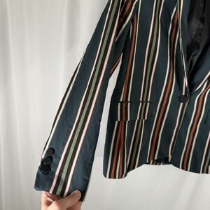 Zara Women Blazer Women's Small Green Striped Single Button Front Faux Pockets
