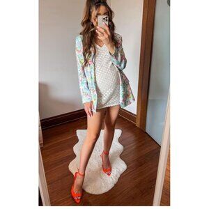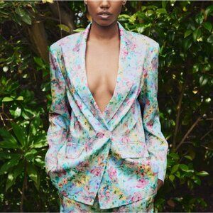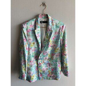 Zara Women Bloggers Favorite Floral Satin Double Breasted Blazer Multicolor Sz L