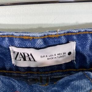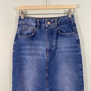 Zara Women Blue Denim Front Slit Frayed Raw Hem Maxi Skirt