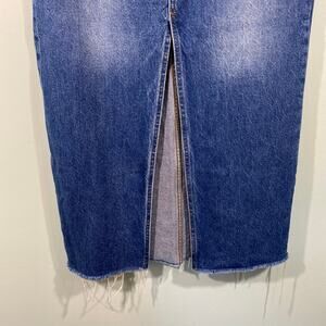 Zara Women Blue Denim Front Slit Frayed Raw Hem Maxi Skirt Size S