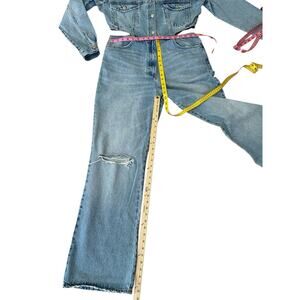 Zara Women Blue Full Length Wide Leg Denim Jumpsuit With Side Cut-Outs Size XL. Gently used, in excellent condition. Cotton blend, fabric tag missing. Intentionally distressed, button, zipper front, front & back pockets, Step out in style with this chic Zara women's denim jumpsuit!