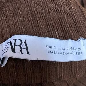 Zara Women Brown Long Sleeve Ribbed Knit Turtleneck Slim Fit Sweater Top Size S