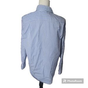 Blue and white striped button down top with floral embroidery and hidden buttons. A little bit of an over sized fit. In excellent pre-owned condition. Size S. The material tag is missing but it feels like a cotton blend.