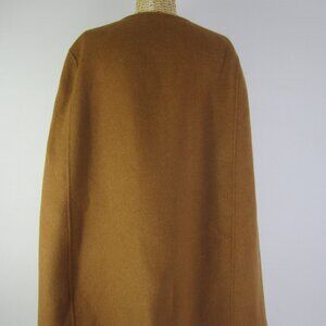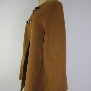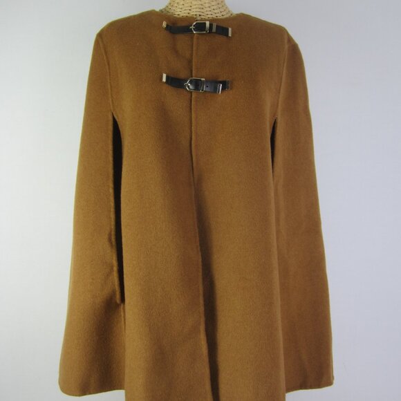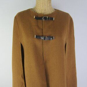 Zara Women Camel Cape Wool Blend Hand Made Faux Leather Buckles Relaxed