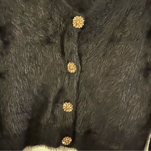 Zara Women Cardigan Fur With Crystal Buttons Goth Moody Black L