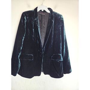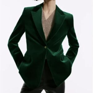 Zara Women Dark Green Velvet Lined 1 Button Single Breasted Blazer size Large