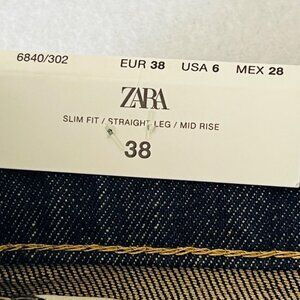 Zara Women Distressed Slim Full-Length Straight Leg Mid Rise Blue Jeans Sz 6 NWT