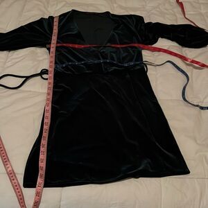 Zara Women Dress Sz XS Green Velvet V Neck Slimming Side Wrap Mini Long Sleeve