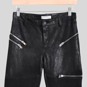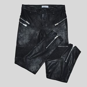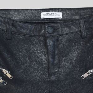 Zara Women Faux Suede Moto Skinny Pants Black Size XS