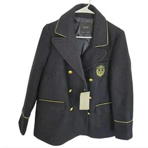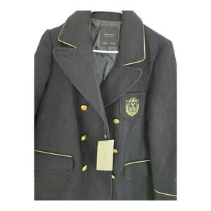 New with tag women's navy lined wool blend Zara Jacket with embroidery buttons and trim, Size Small