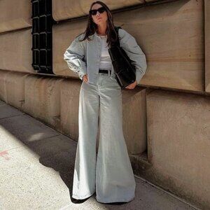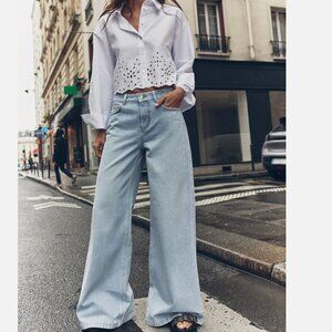 Zara Women High Rise Wide Leg Palazzo Denim Jeans Light Blue Sz 8 NWT