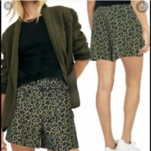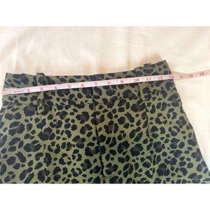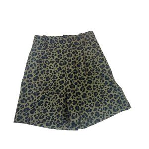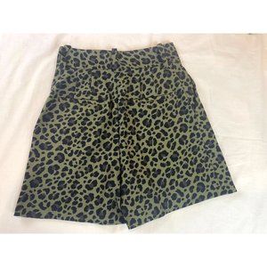 Zara Women High Waisted Chino Shorts High Rise Leopard Print Green Black SZ XS